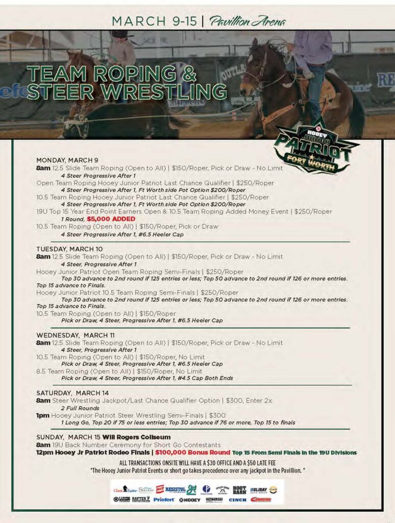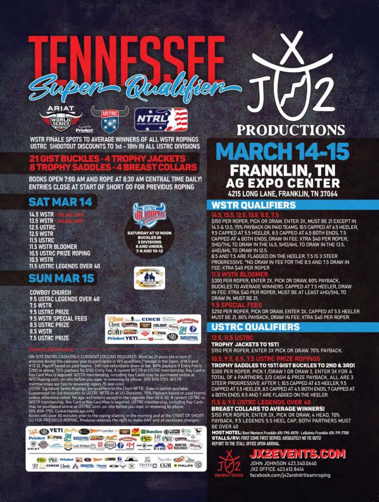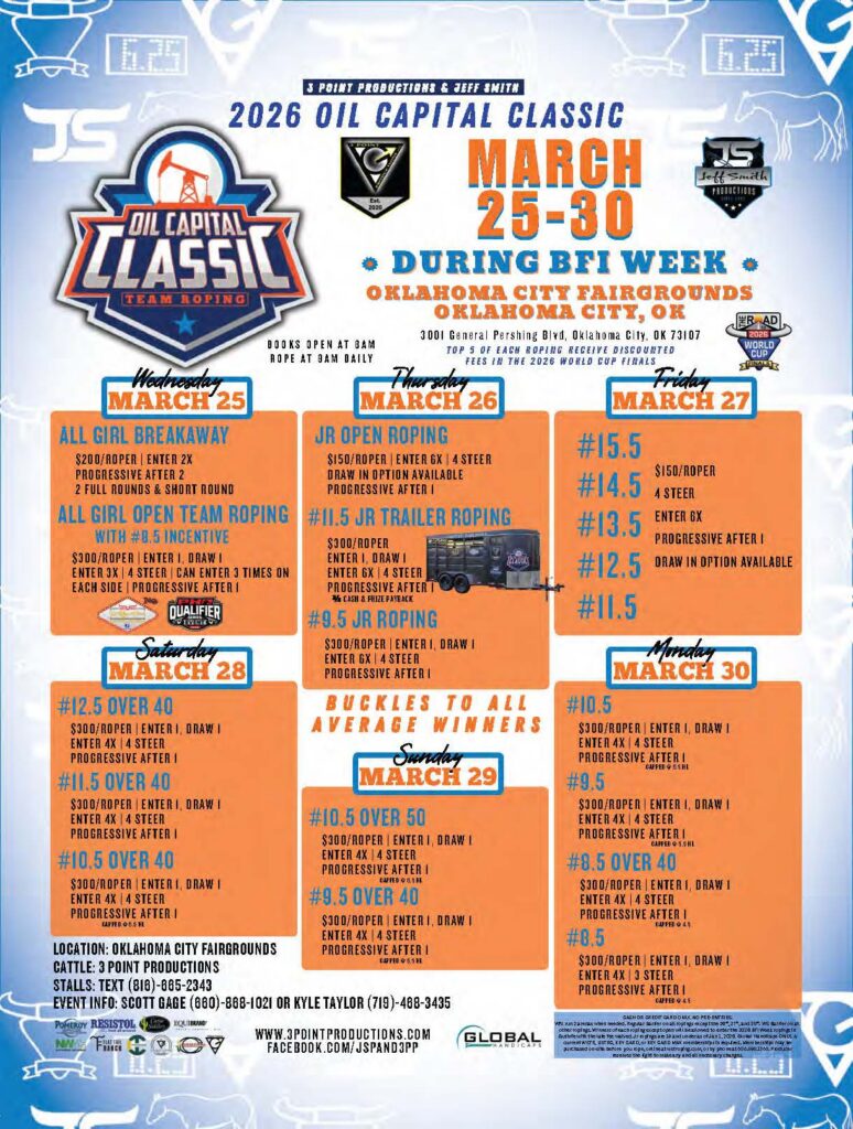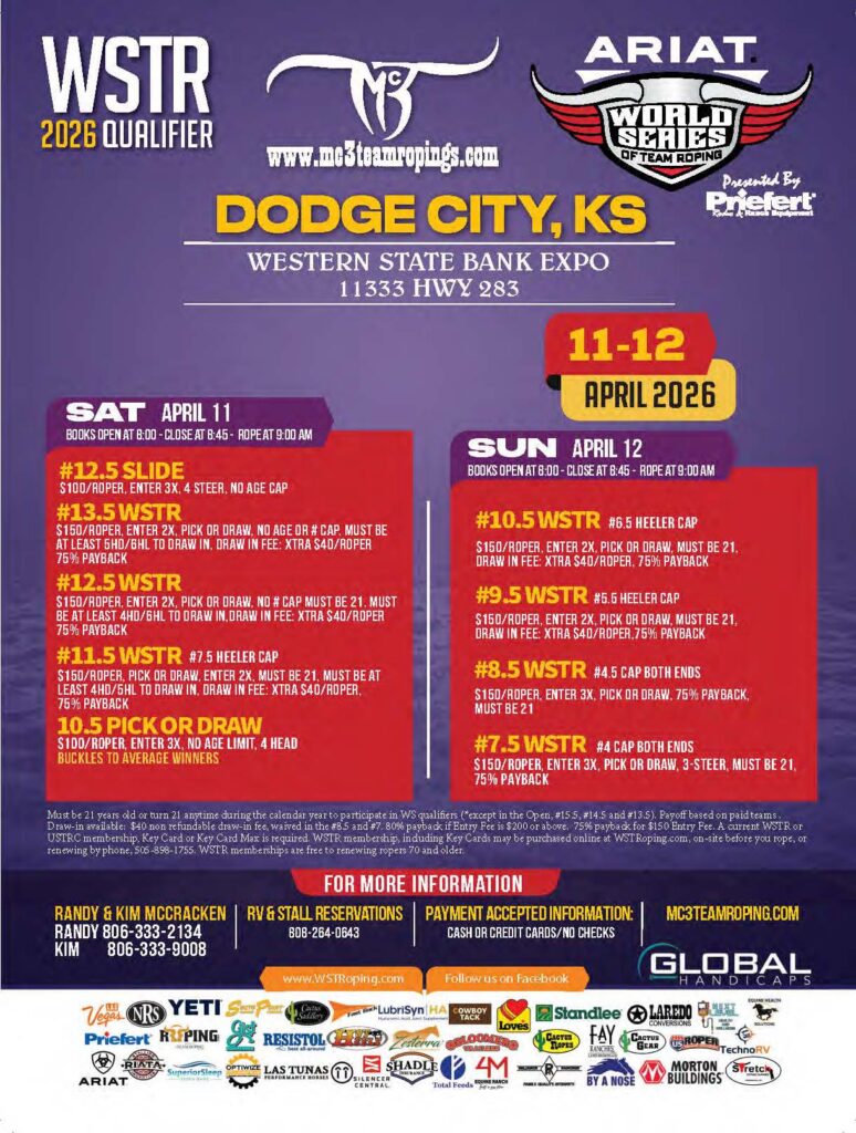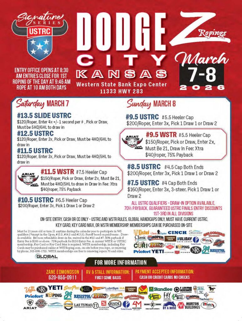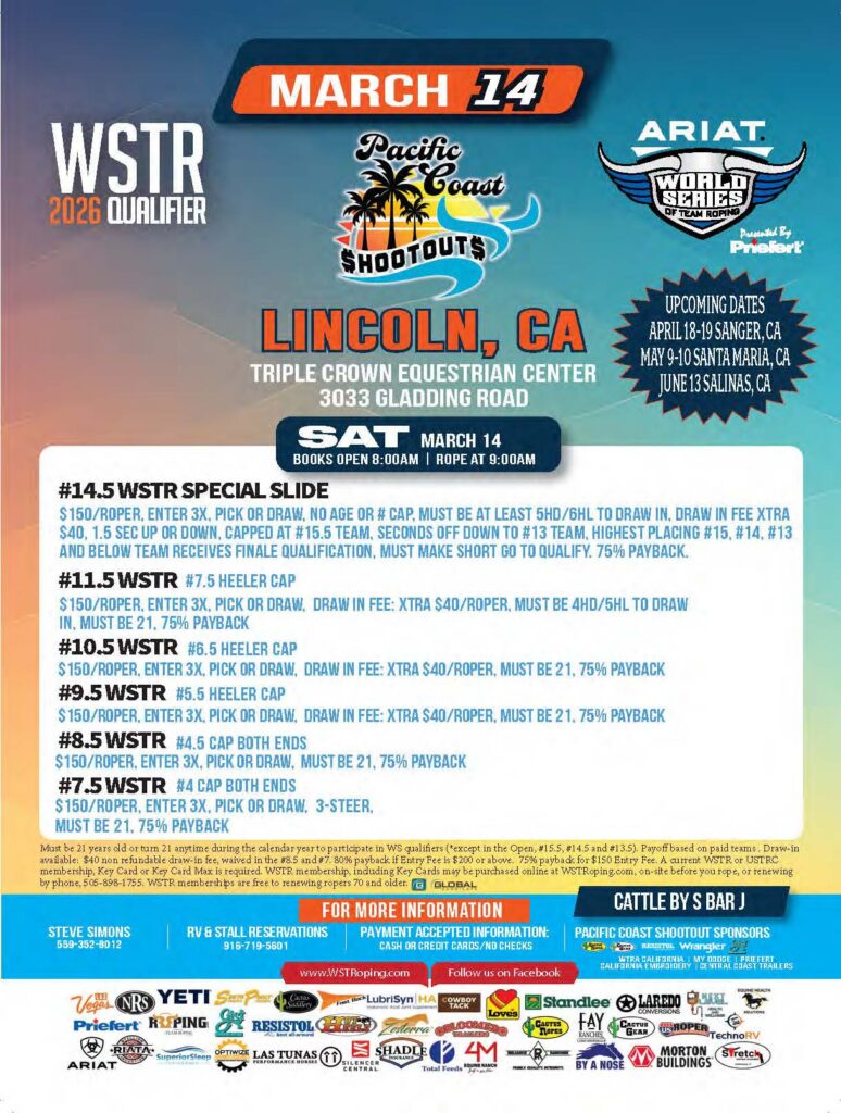 Never miss a roping! Check out the team roping event ads for March 2026 and beyond.