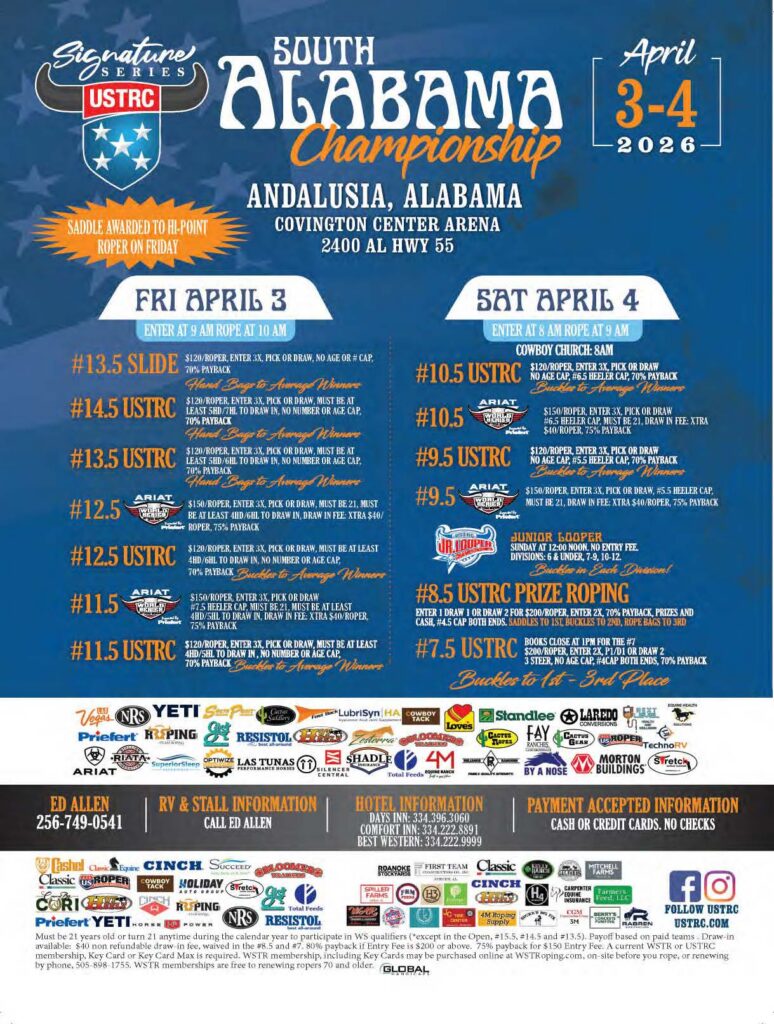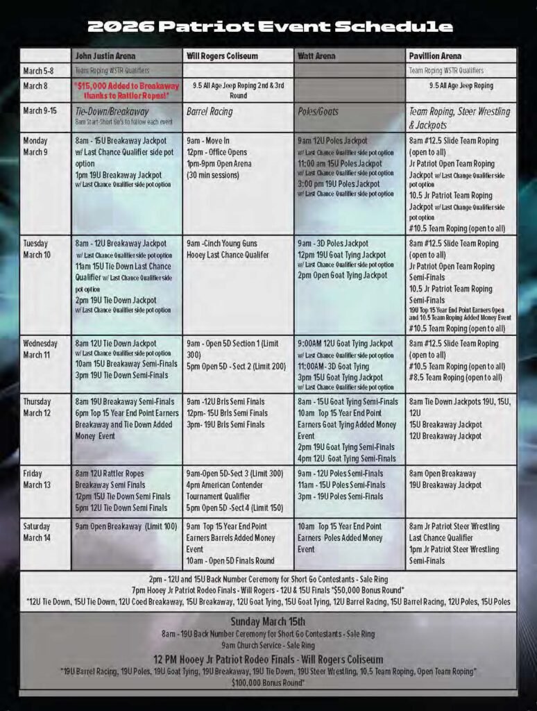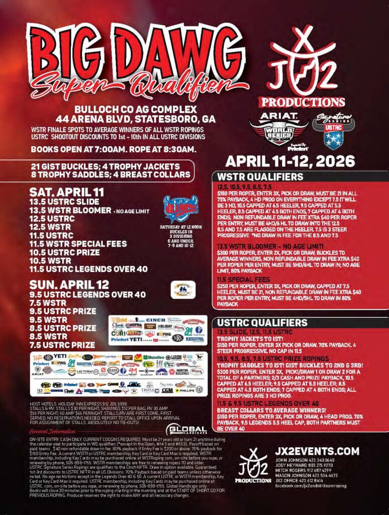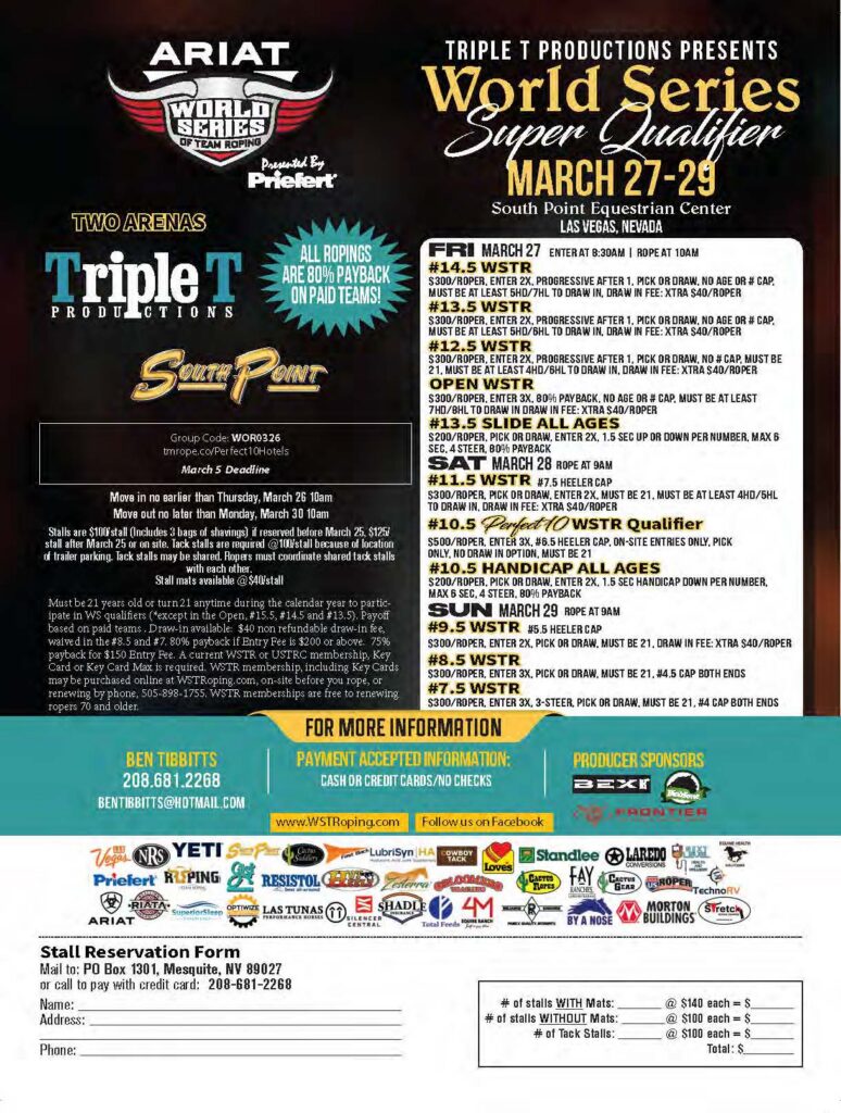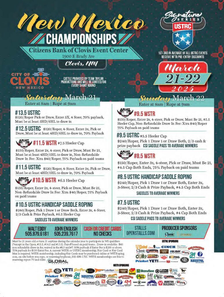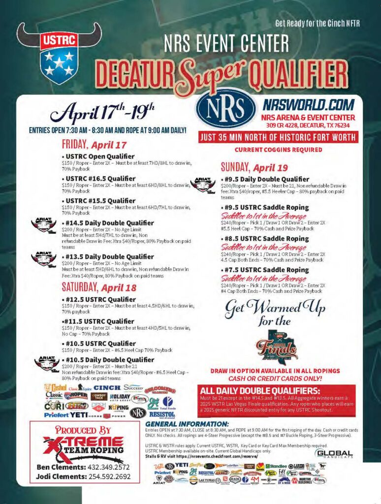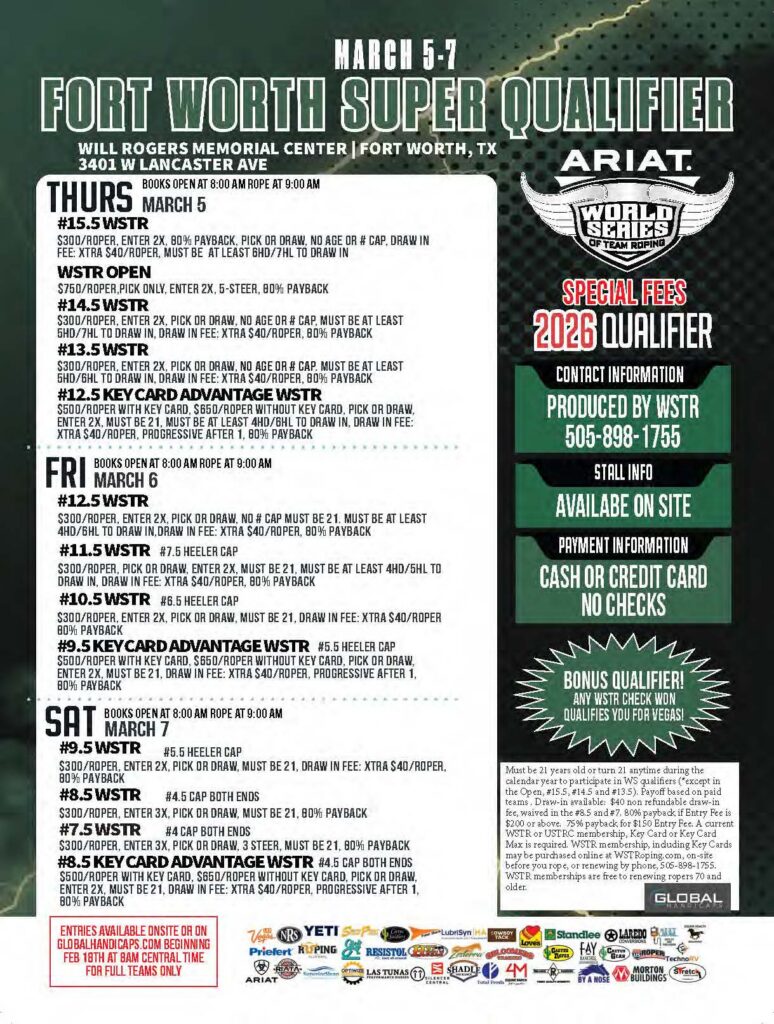 Never miss a roping! Check out the team roping event ads for March 2026 and beyond.