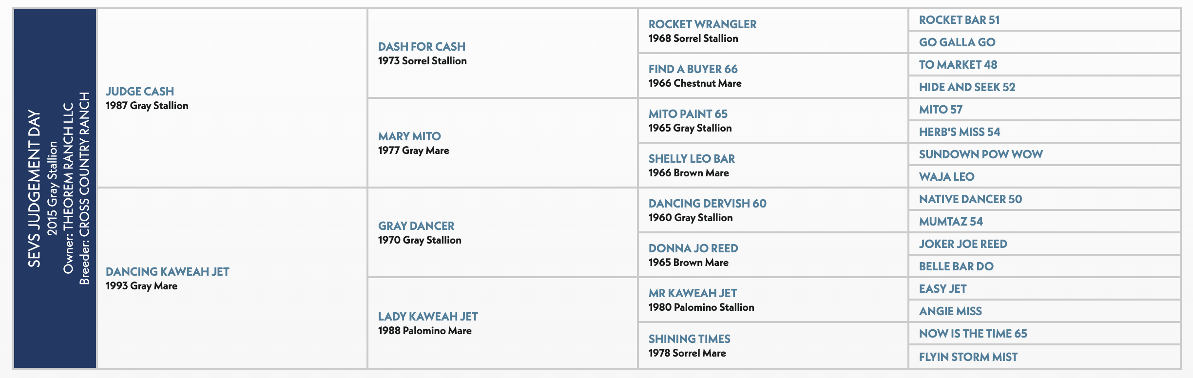 Now owned by Theorem Ranch, SEVS Judgment Day is now both a Pink and Riata stallion. He’ll be the first stallion in both of these high-end incentives to compete at the Thomas & Mack.