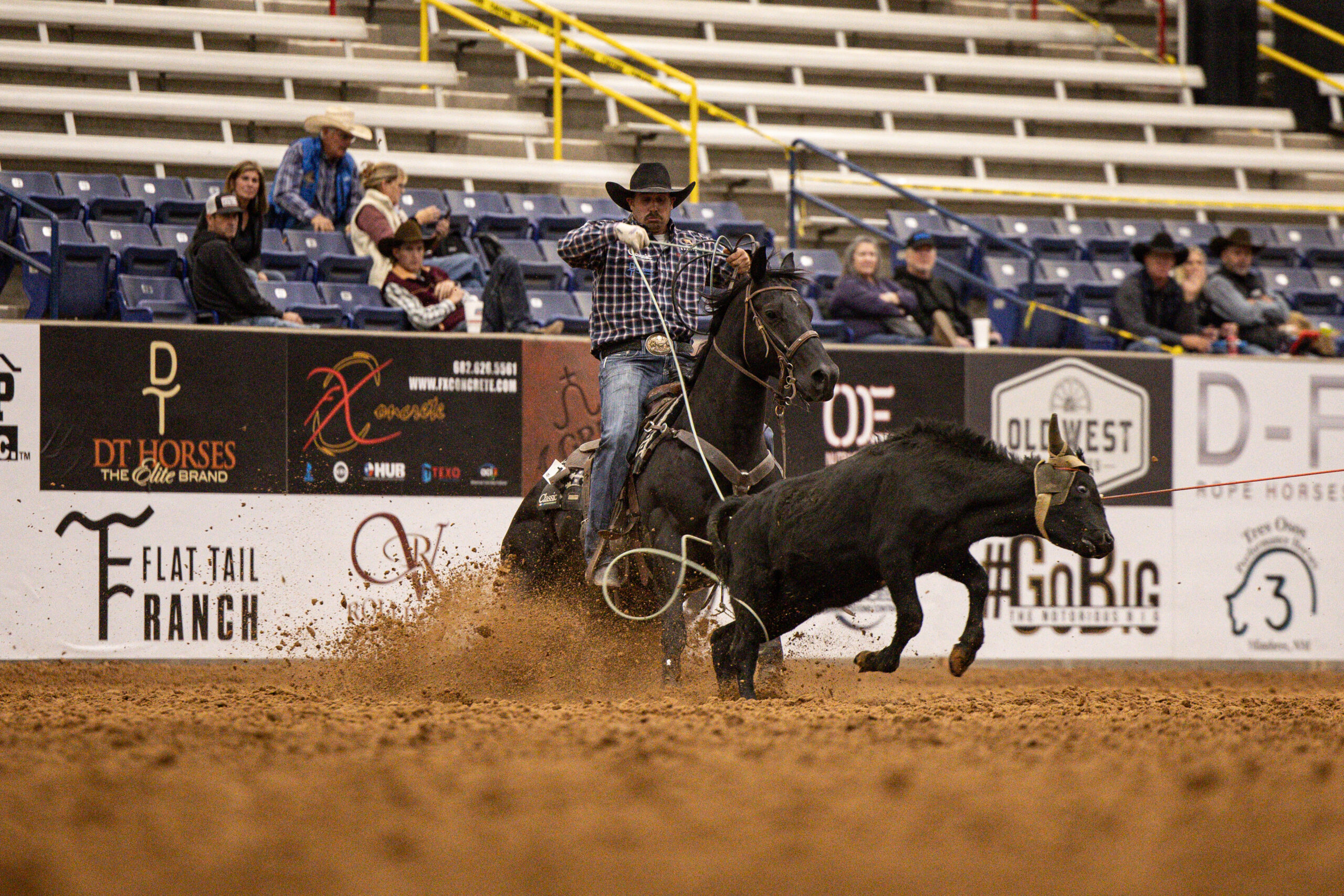 Buhler and DT Hickorys Angus are 701.79 on three, ahead of Joseph Harrison and 2024 Old West Champ Copperton who are 691.79 on three. Buhler and “Angus” won two of three rounds, already pocketing $4,000 for the horse bred and owned by Scottsdale, Arizona’s DT Horses.