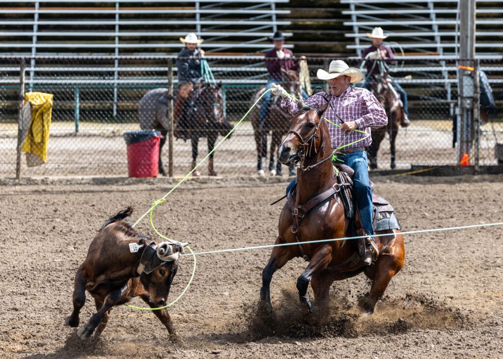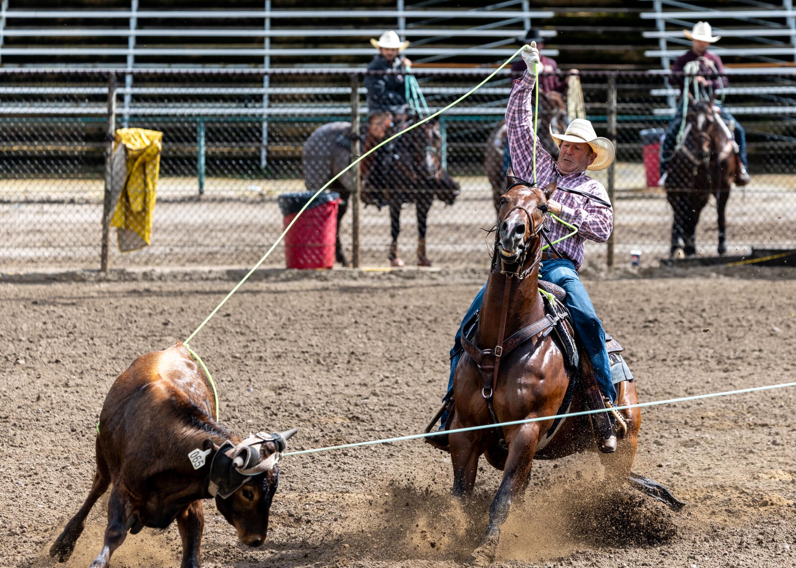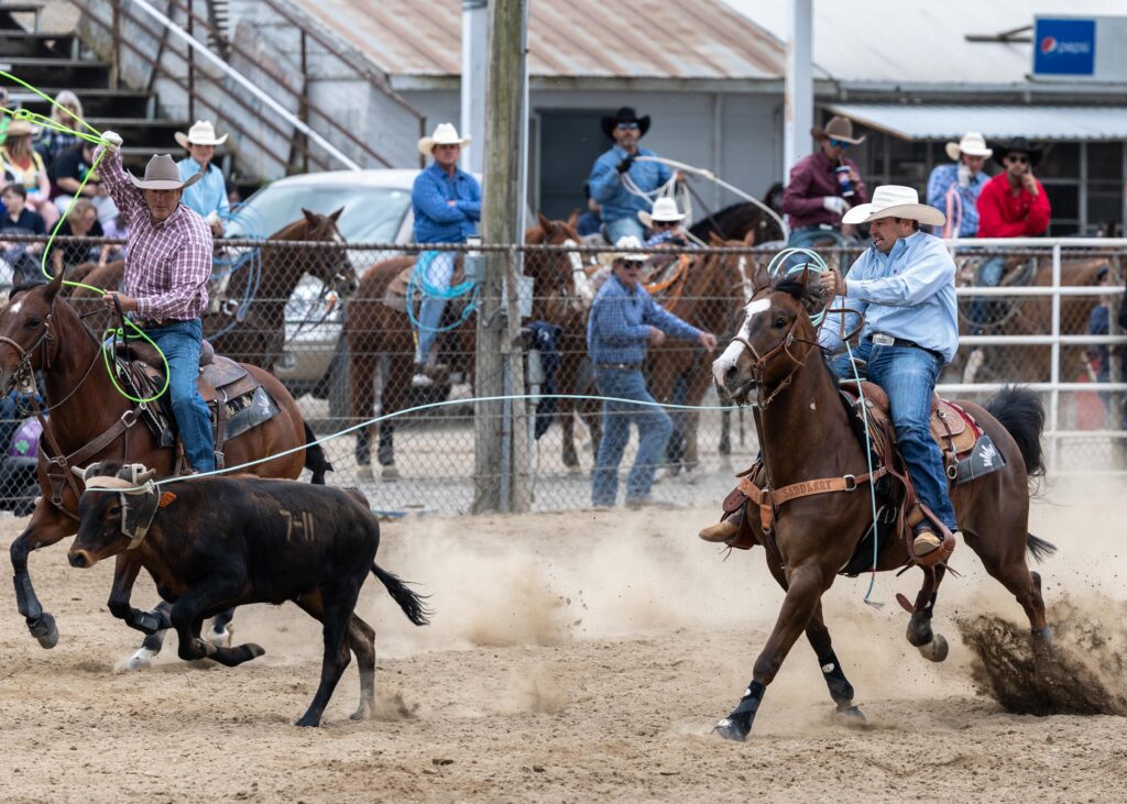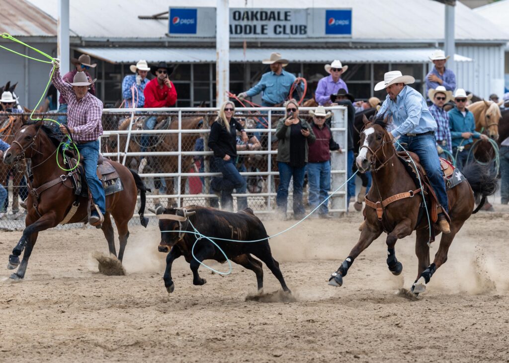 One of the traditional twists at Oakdale is both partners coming from the heeling side of the steer.