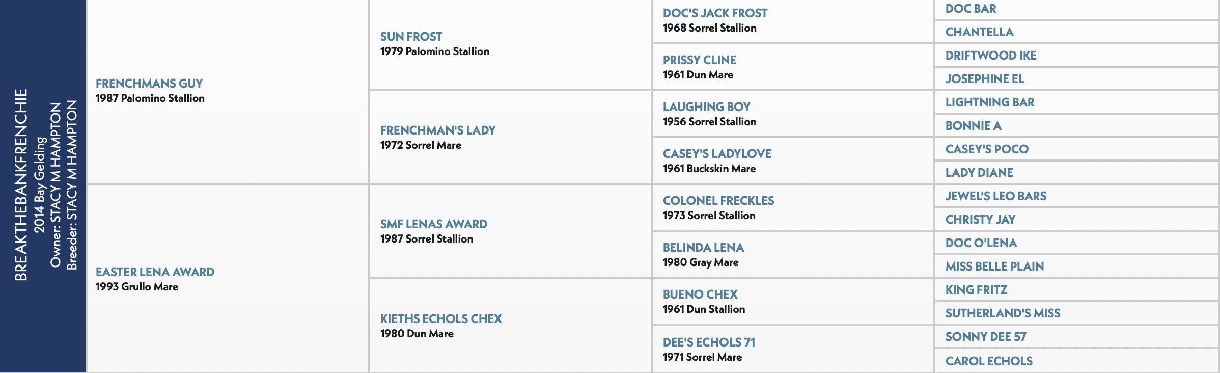 Brit rode Sunny Lone Cactus, who’s by Sherry Cervi’s stud Alone Drifter. He bought the chestnut he calls Cactus over the phone as a 3-year-old, and he’s 8 now. Todd rode his bay ace, Banker. Breakthebankfrenchie is 12.