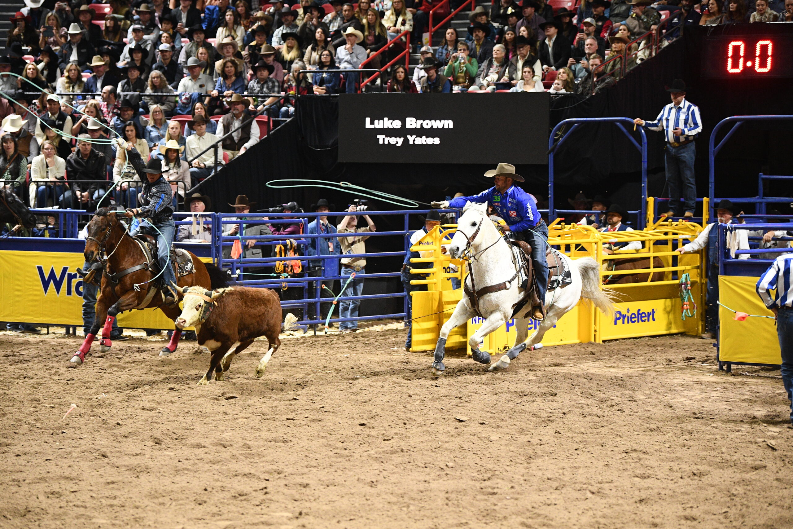 Champ’s take: Again, Derrick did a good job and stuck it on him. They were down far enough that the round was relatively easy to place, so it looked like Derrick wasn’t just trying to spin one to be 3, but to be 4. And then Colter just roped leg.