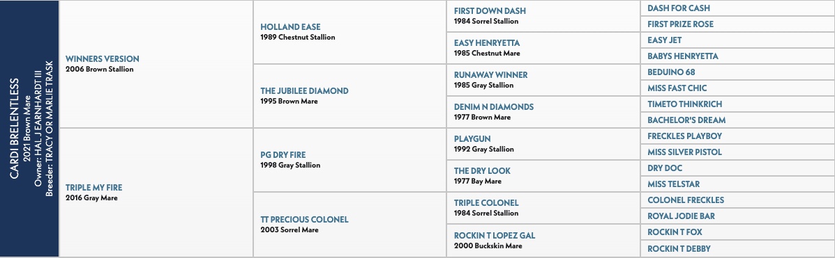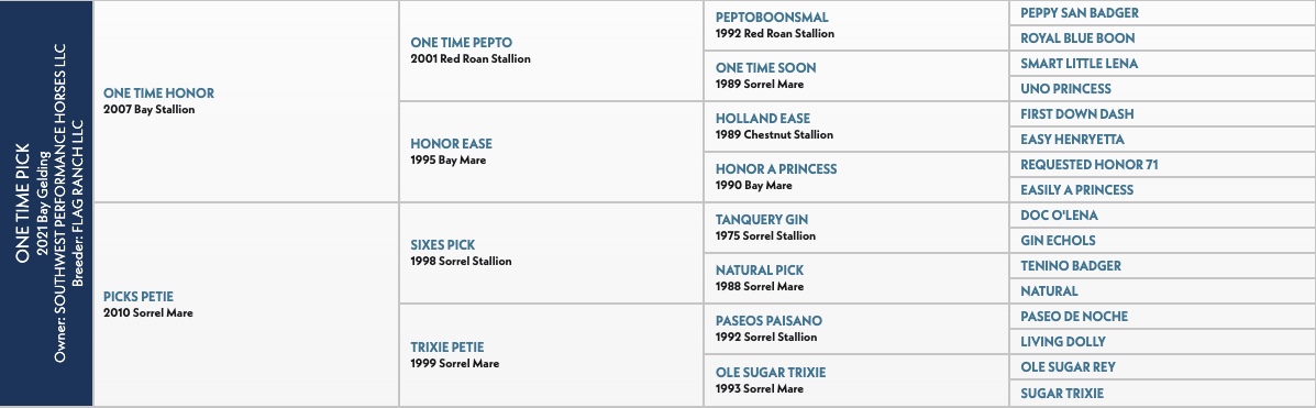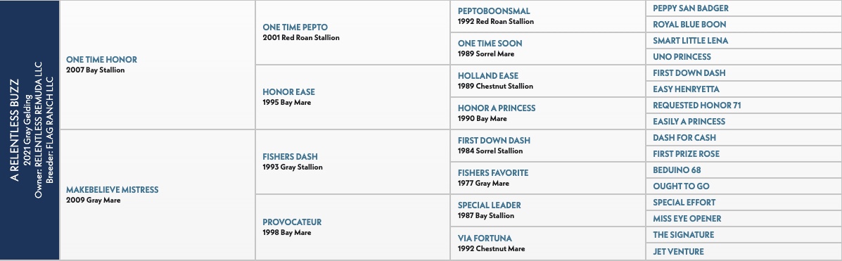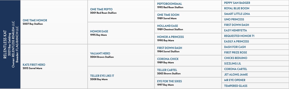 - One Time Honor has the most offspring in the short round, siring One Time Pick, Relentless Kat, and A Relentless Buzz.