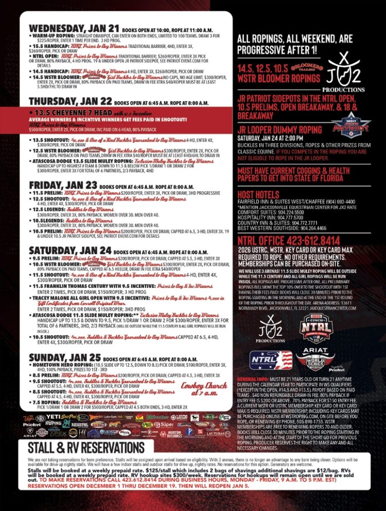 The National Team Roping League (NTRL) Finals is an event jam-packed with big-time payouts and big ropings. Happening Jan. 21-25, 2026 at the Jacksonville Equestrian Center in Jacksonville, Florida, JX2 Productions will see hundreds of teams in the span of a few days.