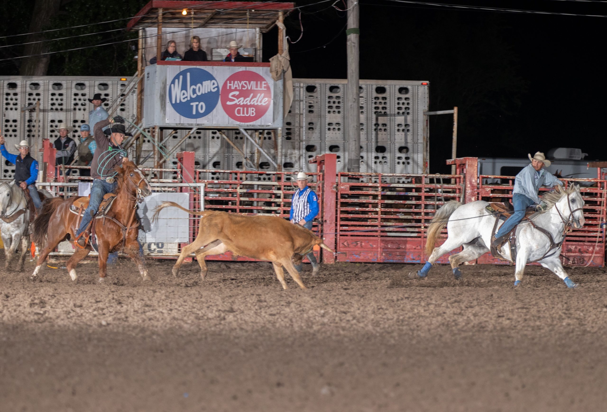 1. Layne Carson/Tracer Olson, 6.9 seconds, $1,081 each; 2. Ky Redstrom/Trevor Schnaufer, 7.3, $811; 3. A.J. Zieman/Nathan Zieman, 12.1, $541; 4. Eli Lord/Drew Gartner, 12.6, $270.