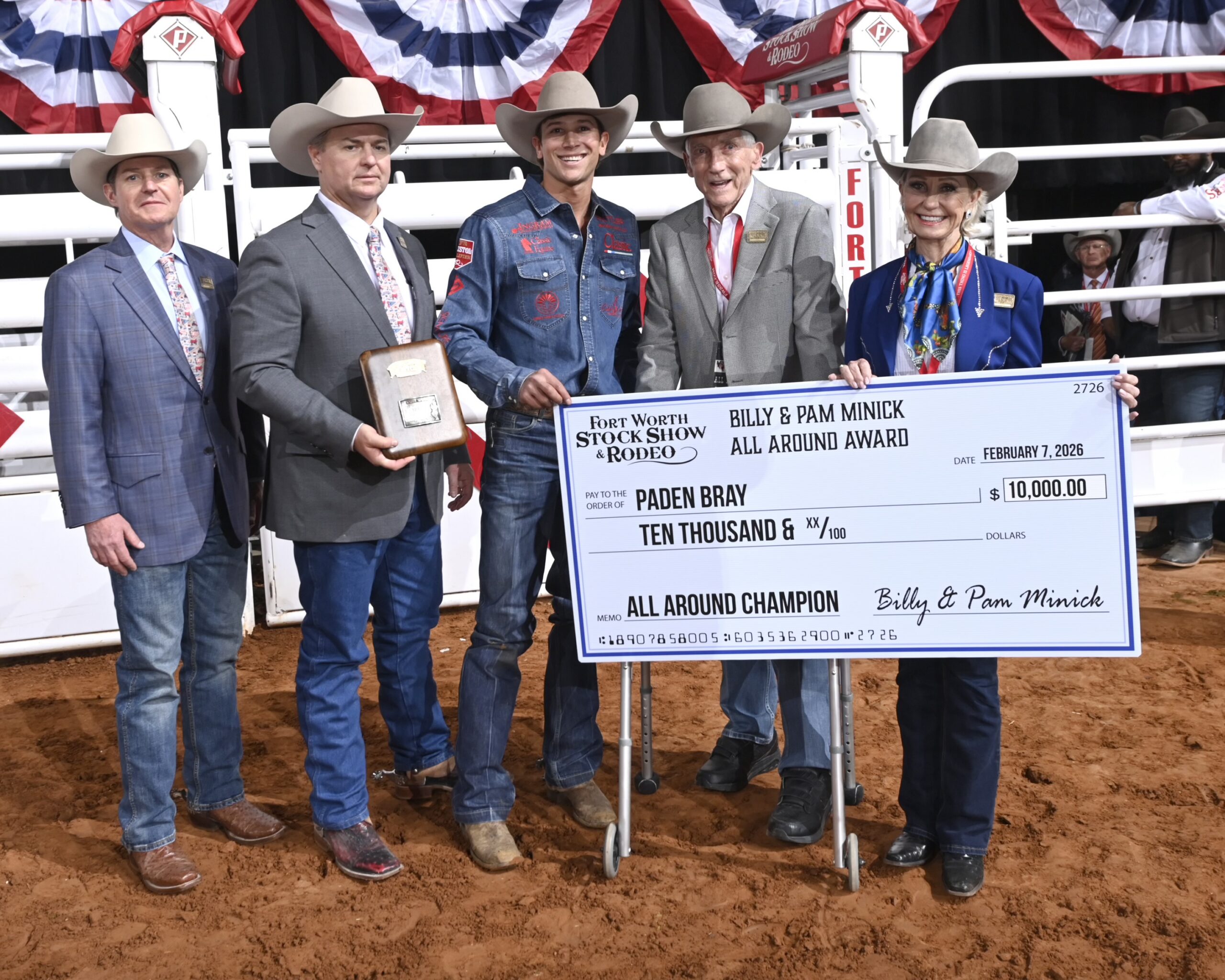 “I’ve won a lot of all-arounds, but I’ve never heard of an all-around prize like this in my life,” said Bray, 27, who makes his home in the nearby Cowboy Capital of the World in Stephenville. “To be fortunate and blessed enough to win this the first year Pam and Billy put this prize up is unbelievable. It feels like a sponsorship. I’ve never seen or heard of an all-around award like this one.”