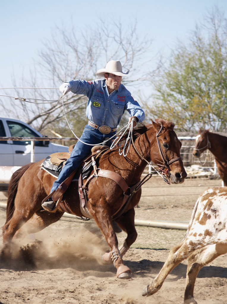 Never one to let a good theory go untested, he went to a neighbor’s where they let him chase steers around and start to figure it out. Soon, he realized that roping wasn’t easy. It would take a real commitment to reach the point where he could be competitive. Rather than flashing an aw-shucks grin and hanging his new trophy saddle up for show, he got serious.