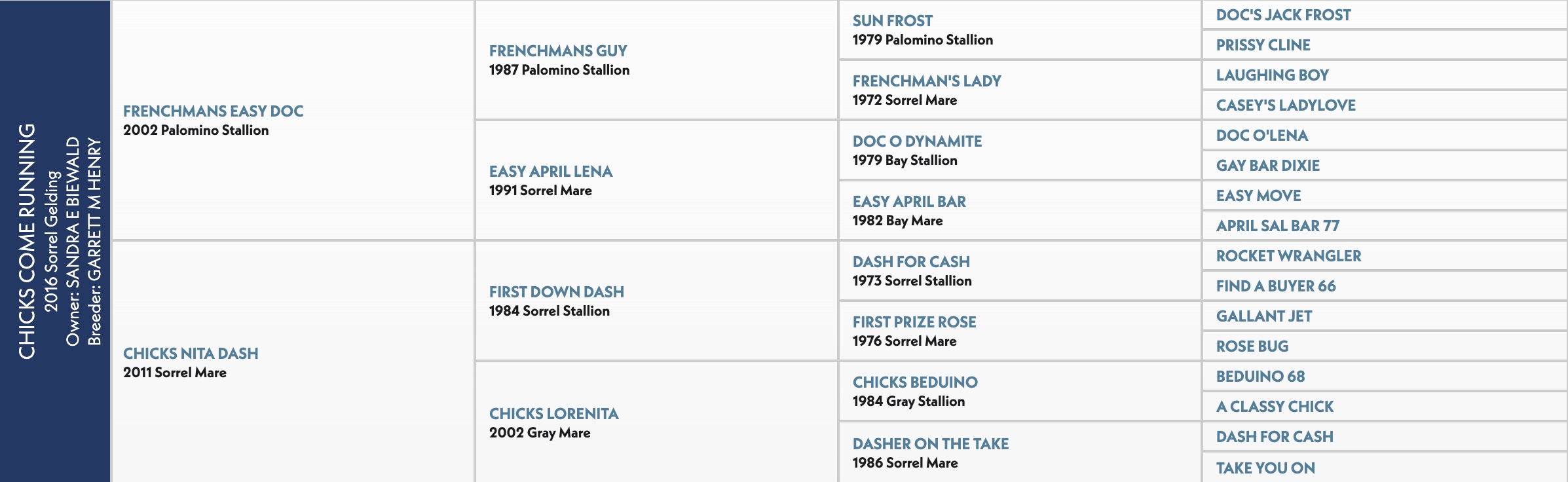 On the head side, Chicks Come Running, “Coop,” is the 9-year-old running-bred gelding Travis has had for three years.