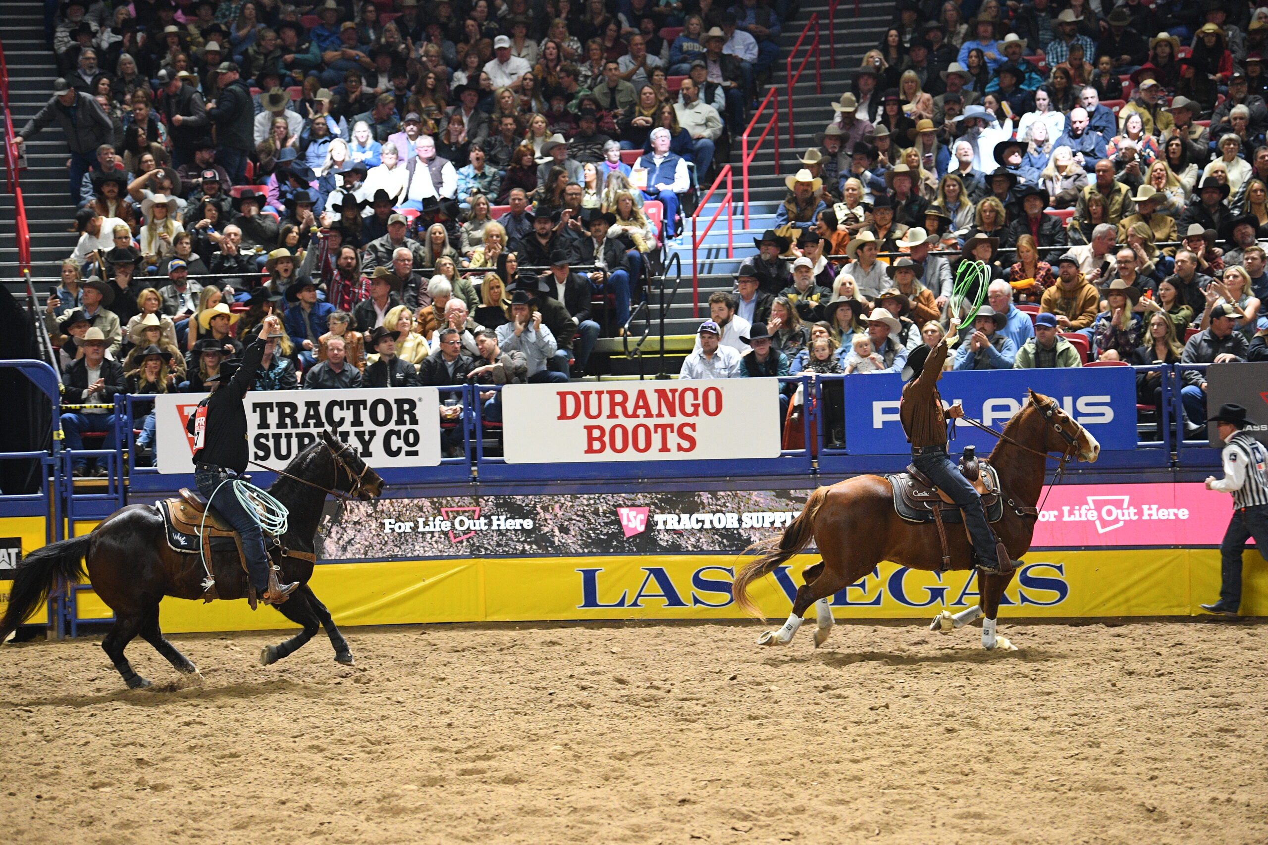 Tanner Tomlinson and Travis Graves got their first round win of the 2025 NFR in Round 6. Tomlinson and Graves came within one-tenth of a second of the Thomas & Mack arena record with a 3.4-second run to pocket $36,667.95 apiece.