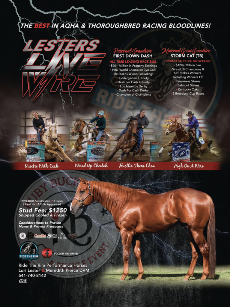 Lesters Live Wire will stand at Juniper Ridge Ranch in Terrebonne, Oregon, in 2026 and his foals are eligible for several incentives including the Ruby Buckle.