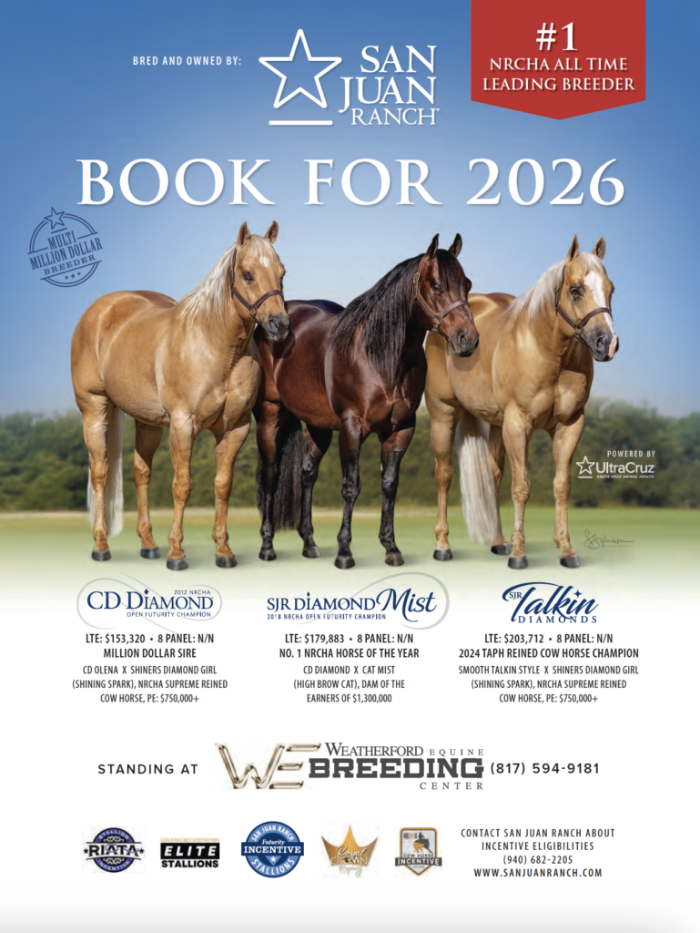 Last fall, CD Diamond crossed the million-dollar mark in rope-horse progeny earnings to rank fifth all-time among rope-horse sires. It’s a big milestone for San Juan Ranch, which was also named the Gold Buckle Roping Futurities’ Leading Breeder for 2025.