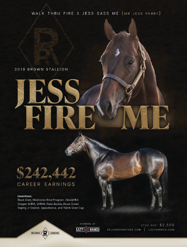 In Reliance Ranches’ quest to build top-level performance horses, Jess Fire Me provides a perfect mix of strong pedigree and proven ability.