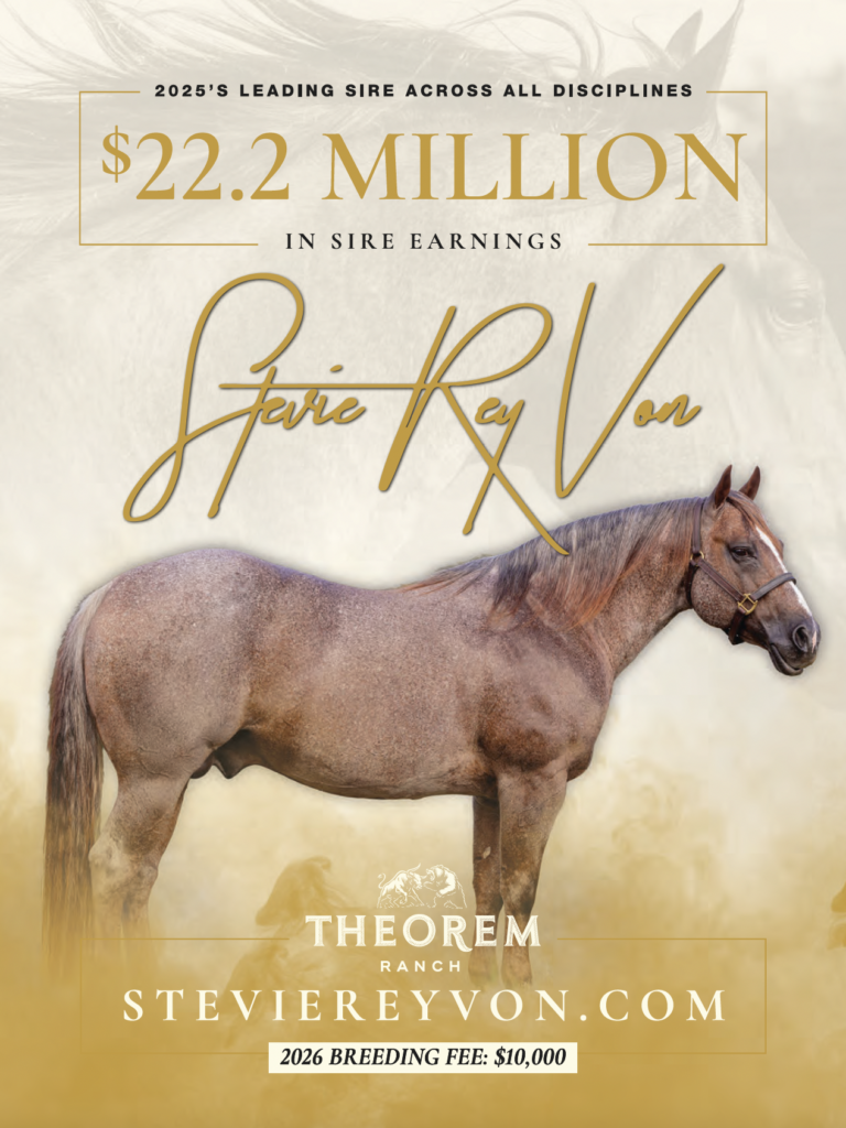 With Theorem Ranch shaping his future, Stevie Rey Von stands poised to extend his influence as one of the Western performance industry’s defining sires.