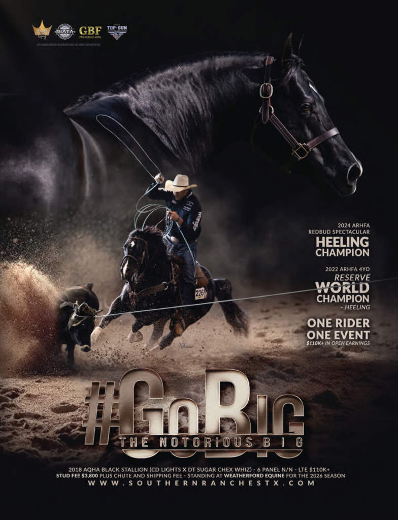 The 2018 stallion was the 2022 ARHFA 4-Year-Old Open Heeling reserve champ and came back in ’23 to place third. He was also a top-five finisher at the AQHA World Show in Junior Heeling. Billie Jack Saebens piloted him to more than $110,000 in heeling alone.