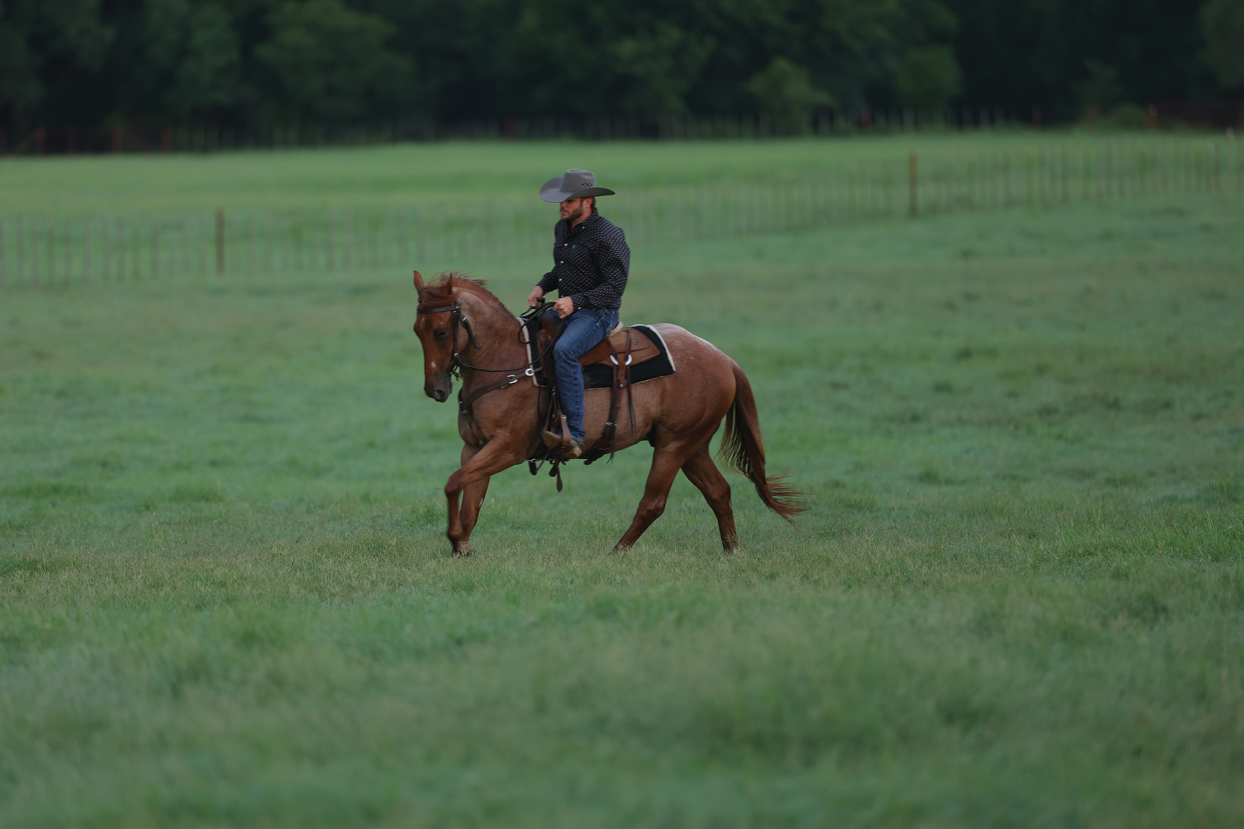 To get there, I do a lot of galloping and turning them loose, then breaking them down consistently. I’m not afraid to redline one a little—to really move out—then ask them to come right back to me. When I pick up, I want them to give their chin and rate their feet back immediately. I want them to feel good in my hand and be confident relaxing into my ask. That’s what sets them up to be able to rate later when we put a cow or a dummy in front of them.