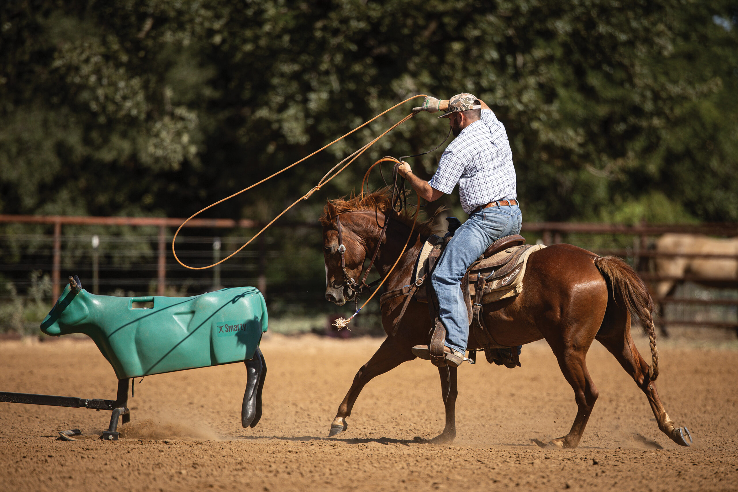 Even seasoned horses can get out of time or start cheating your throw. If that happens, I’ll go back to the fundamentals. A dummy exposes different holes than live cattle do. Sometimes it helps me remind an older horse to frame up, stay with me and not anticipate. It’s a way to reset them without the pressure of a live run.